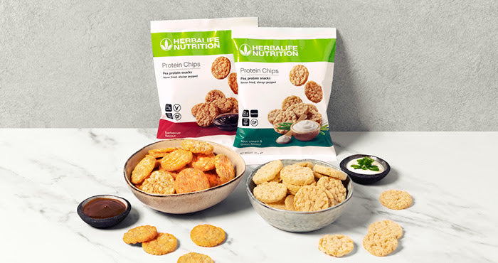 Einen gesunden und aktiven Lifestyle zu verfolgen, bedeutet nicht, dass du geschmacklose Mahlzeiten zu dir nehmen und auf Snacks verzichten musst. Ändere deine Sicht auf Snacks und verwöhne deine Geschmacksknospen mit der dezenten Schärfe und der rauchigen Note unserer Protein-Chips mit Barbecue Geschmack sowie dem würzigen Geschmack unserer Protein-Chips in der Geschmacksrichtung Sour Cream & Onion. Protein-Chips haben 50 % weniger Fett im Vergleich zu frittierten Kartoffel-Chips, weil wir sie nicht frittieren. Wir puffen sie mit Hitze, um dich mit einer herzhaften und knusprigen Leckerei verwöhnen zu können. Unsere Protein-Chips sind erhältlich in zwei verlockenden Geschmacksrichtungen und glutenfrei.